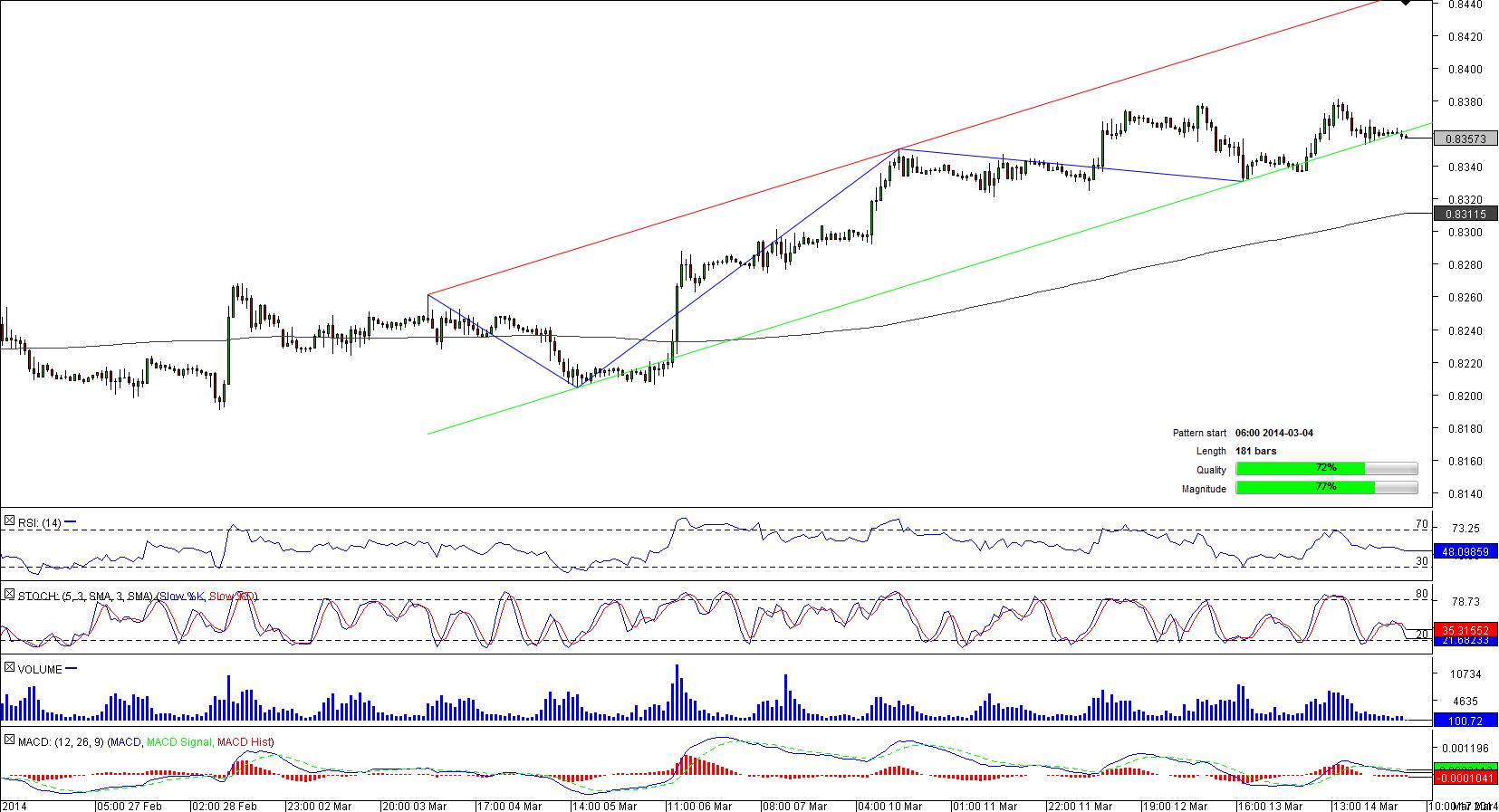 After a drop to a one-year low of 0.8158 in mid-February, the Euro reversed its trend against the British Pound. During the next two weeks, the advance was mild; however, first days of spring gave the pair an impetus for a sharper appreciation that took place in the 181-bar long channel up pattern.