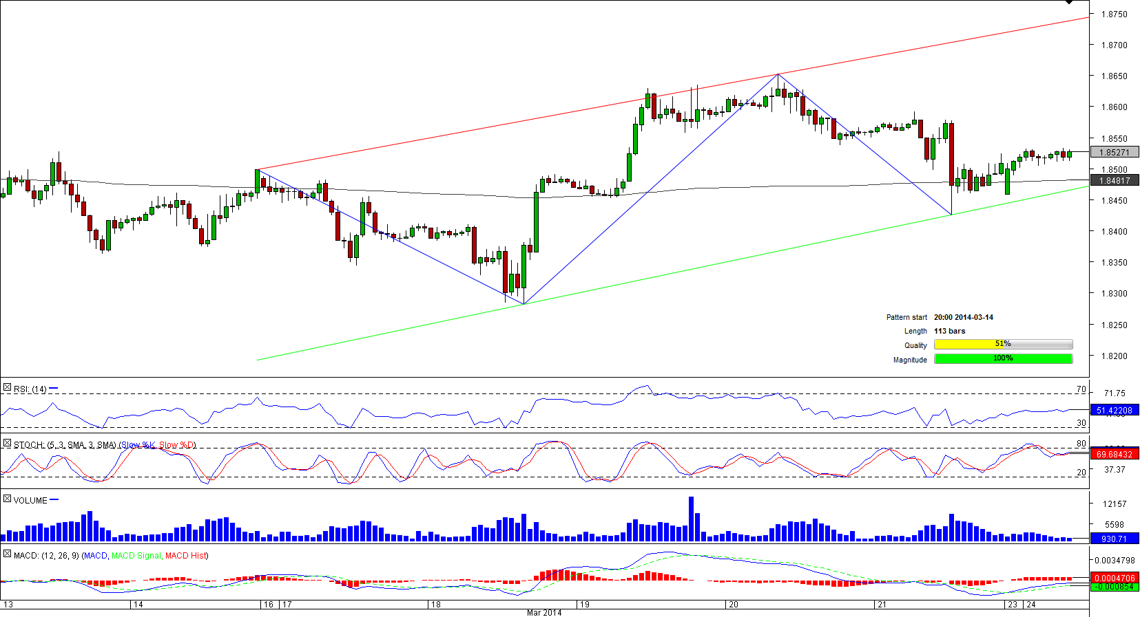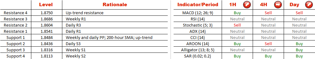 For the past five trading days GBP/CAD seems to have been trading between two parallel rising trend-lines. For this assumption to prove to be true, the currency pair needs to rebound from the support near 1.85 (200-hour SMA, weekly PP and up-trend); most of the technical indicators favour such a course of events. Then the price will be expected to head towards 1.8750, the upper boundary of the bullish channel, from where in turn it will be expected to undergo a downward correction. However, it must be noted that the SWFX market participants doubt the ability of the Sterling to appreciate— merely 29% of open on the pair positions are long.