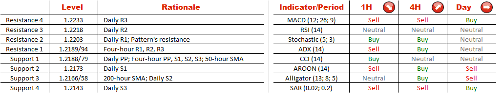 At the moment, EUR/CHF is sitting at the 50-hour SMA at 1.2184 that acts as a strong support level preventing a further drop to 1.2181/73 (four-hour S2, S3; daily S1), below which the pair may only seek support at 1.2166/43 (200-hour SMA; daily S2, S3).