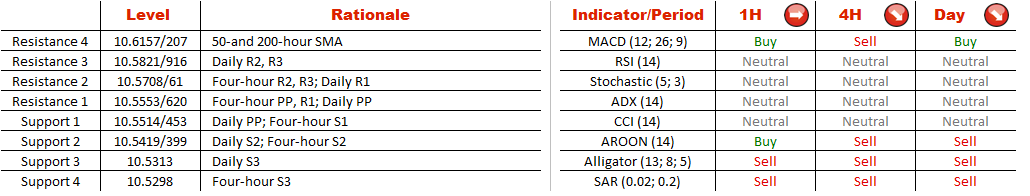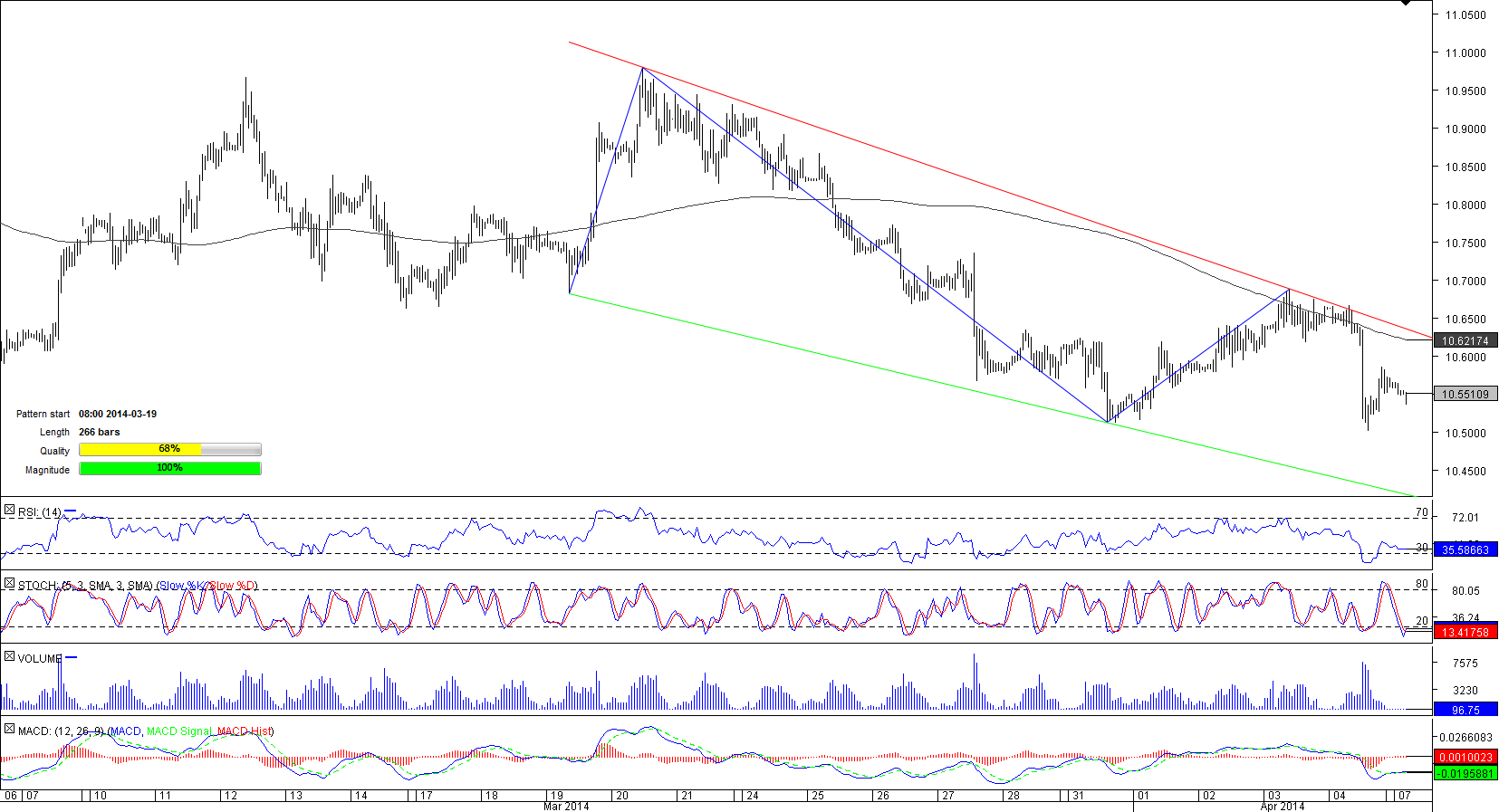USD/ZAR has been shaping the channel down pattern since mid-March and now the pair is trading not far away from a three-month low of 10.5025. In the foreseeable future, the currency couple is likely to prolong its losing streak as more than two-thirds of market players are bearish on the pair.