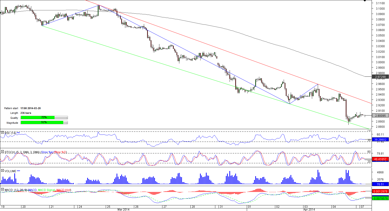 The single currency has been in the down-trend against the Turkish Lira since March 20 when the formation of the channel down started. The tunnel being strongly tilted-downwards was unremittingly pushing the pair lower and during two weeks the currency couple lost more than two thousand pips to hit a four-month low of 2.8832.