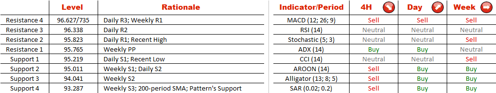 The AUD/JPY pair has been moving in a sideways trend since late October, however just recently bulls managed to push the pair higher. This year's high stands at 96.519 now, however, the rally seems to pause for a while, as the pair retreated back to daily S1 at 95.220. Moreover, the depreciation is likely to continue soon, as indicators on a 4H chart are pointing to the south. Therefore, the pair has a potential to reach a weekly S1 at 95.011, a level which close to a strong psychological level of 95. A move below it is not likely to happen any time soon, as indicators on a daily chart are sending ‘buy' signals, meaning that long traders should keep an eye on a recent high at 95.823.