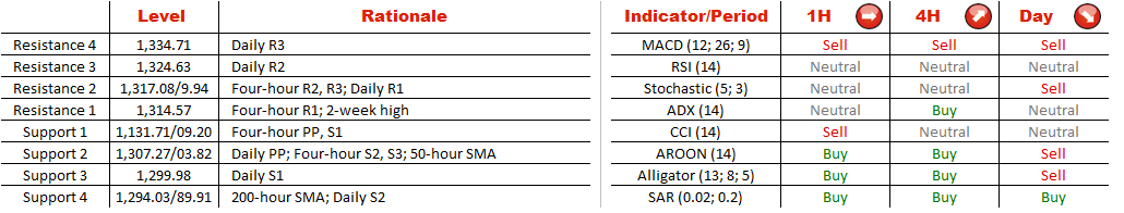 The most traded precious metal is likely to prolong its winning streak in the hours to come given that more than 72% of market participants at the SWFX bet on appreciation of the metal. If these expectations come true, XAU/USD may breach the level of 1,314.57/8.04 (four-hour R1, R2; daily R1; pattern's resistance), above which a sharp rally is likely to take place.