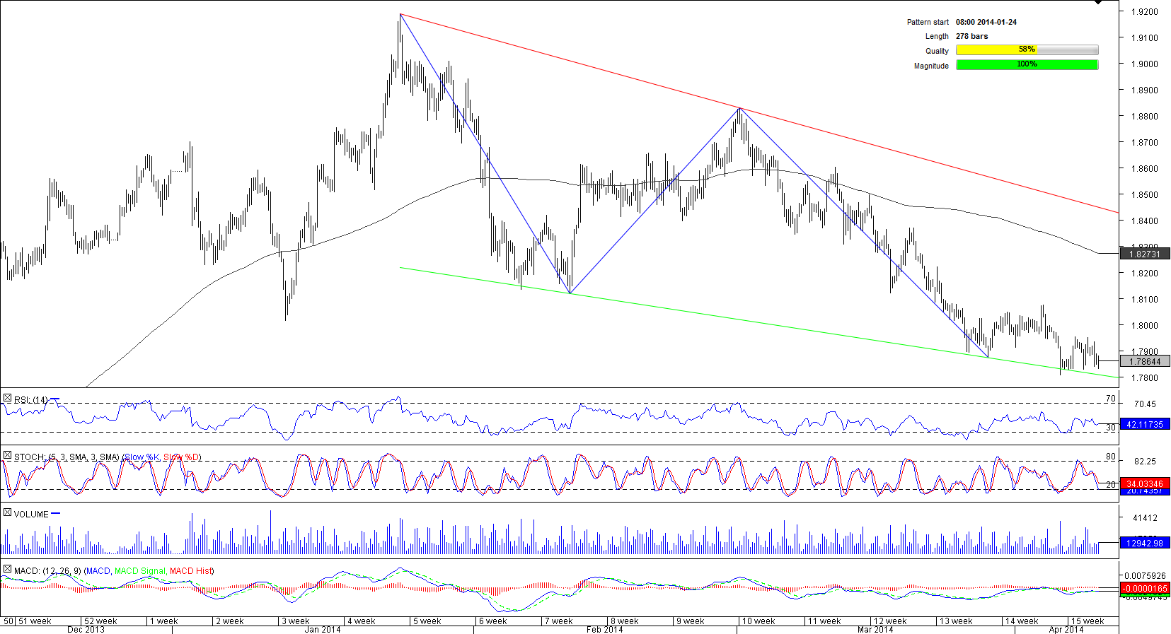 GBP/AUD peaked at 1.9190 in January and since then the currency pair has generally been in decline. And while it may be too early to claim that there is a fully formed falling wedge pattern, the possibility of this being true is fairly high if we connect the most recent tops and bottoms.