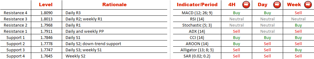 Leaving long-term perspectives aside, the outlook in the short run in deemed to be bullish, mainly because of the presence of the down-trend support at 1.7778. Still, we must note that this line failed to initiate a sustainable recovery in the last days of March. At the same time, SWFX traders' sentiment is strongly bullish, since 73% of open positions are long.
