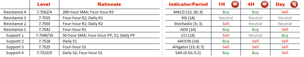 Now the pair is on the rise as a plunge to a six-month low of 7.7530 one day earlier helped the instrument to change its direction. Meanwhile, the currency couple is located not far away from the neck-line at 7.7553 but the likelihood of the breakout remains questionable as technical indicators do not point to any possibility for a rally in either short or long terms.