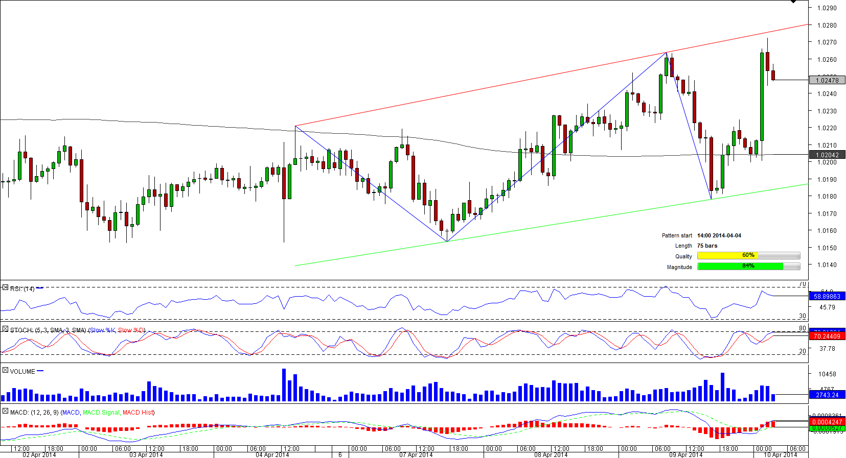 Like in the previous case, the Aussie demonstrated its strength but this time to the Canadian Dollar. The Australian Dollar has been gradually appreciating versus its Canadian peer since the very beginning of April when the pair entered a bullish formation, channel up pattern.