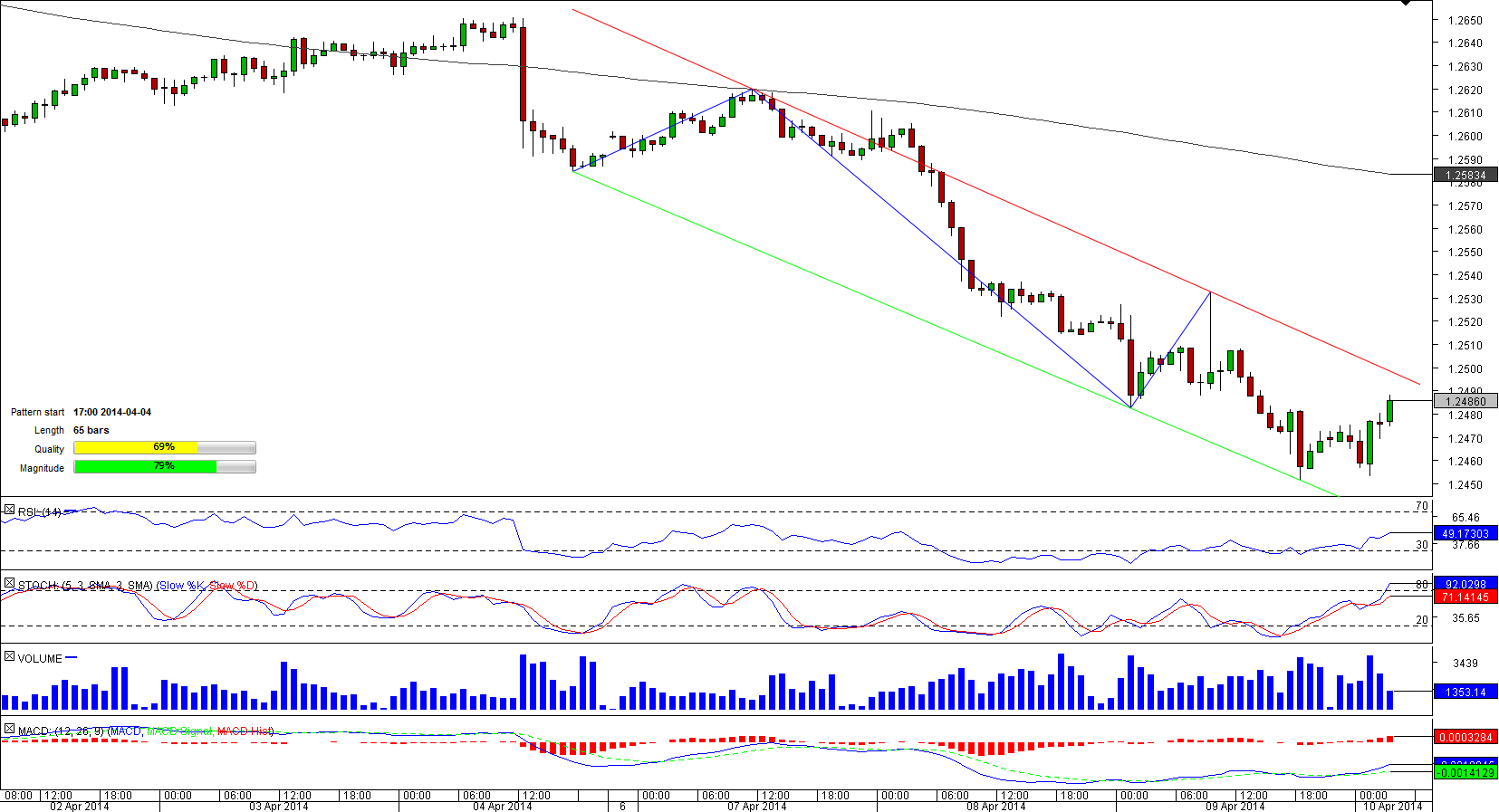 A jump to a two-month high of 1.2794 in the second part of March marked the beginning of the long-lasting downswing that sent USD/SGD to a seven-month low of 1.2453 hit on April 10. Being a subject to a heavy selling pressure, the pair did not surprise anybody by forming a bearish tunnel, within which it is sitting at the moment.