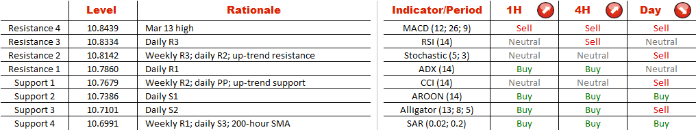Accordingly, the Euro is expected to find support near the up-trend line at 10.7679 and carry on with the rally. However, if the demand there proves to be too soft to overpower the current selling pressure, instead of the upper boundary of the channel at 10.8142 EUR/HKD will most likely target a cluster of supports at 10.70, mainly consisting of the weekly R1 and 200-hour SMA.