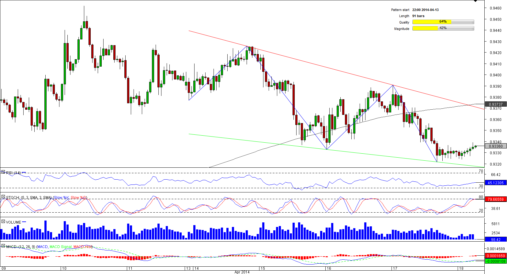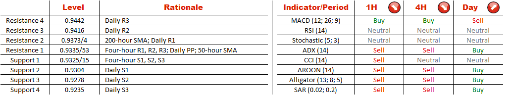 Recently the currency couple has bounced off a two-week low of 0.9322 and now it is likely to witness a rise. This is bolstered by the SWFX data showing that over 77% of all orders are placed to buy the pair. If these expectations come true, AUD/USD will attempt to target a cluster of resistances at 0.9335/47 (four-hour R1, R2, R3; daily PP) that if overcome will send the instrument to more formidable resistance at 0.9354 (50-hour SMA).