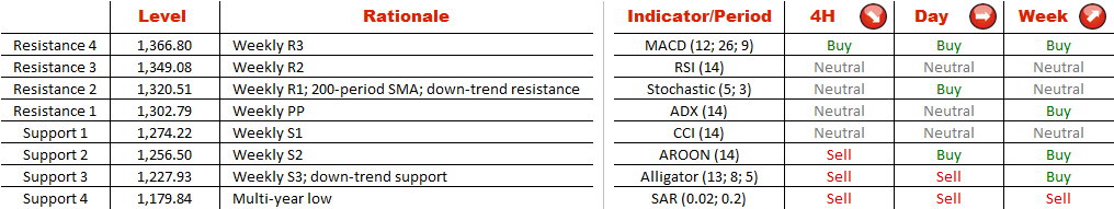 There are still not so many reasons to suspect that XAU/USD is trading within the boundaries of the downward-sloping channel. But if we assume this pattern to correctly reflect reality, the price is likely to stay below the resistance at 1,320.51 (falling trend-line, weekly R1 and 200-period SMA), slide south from the current trading levels and then rebound from the potential support trend-line at 1,227.93. However, the long-term bearish tendency implied by the formation may not last for long, being that gold is approaching levels not seen since the summer of 2010. Accordingly, if the direction does not change, there will be a good chance of a reversal near 1,179.84.