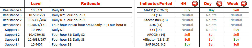 Now the currency couple is sitting at the tunnel's upper limit at 10.5136; however, the breakout is unlikely since about 70% of players at the SWFX bet on depreciation of the pair. Technical indicators also suggest that the instrument may retreat in the medium-term.