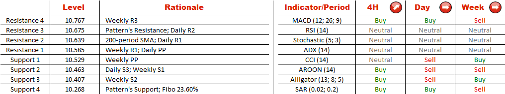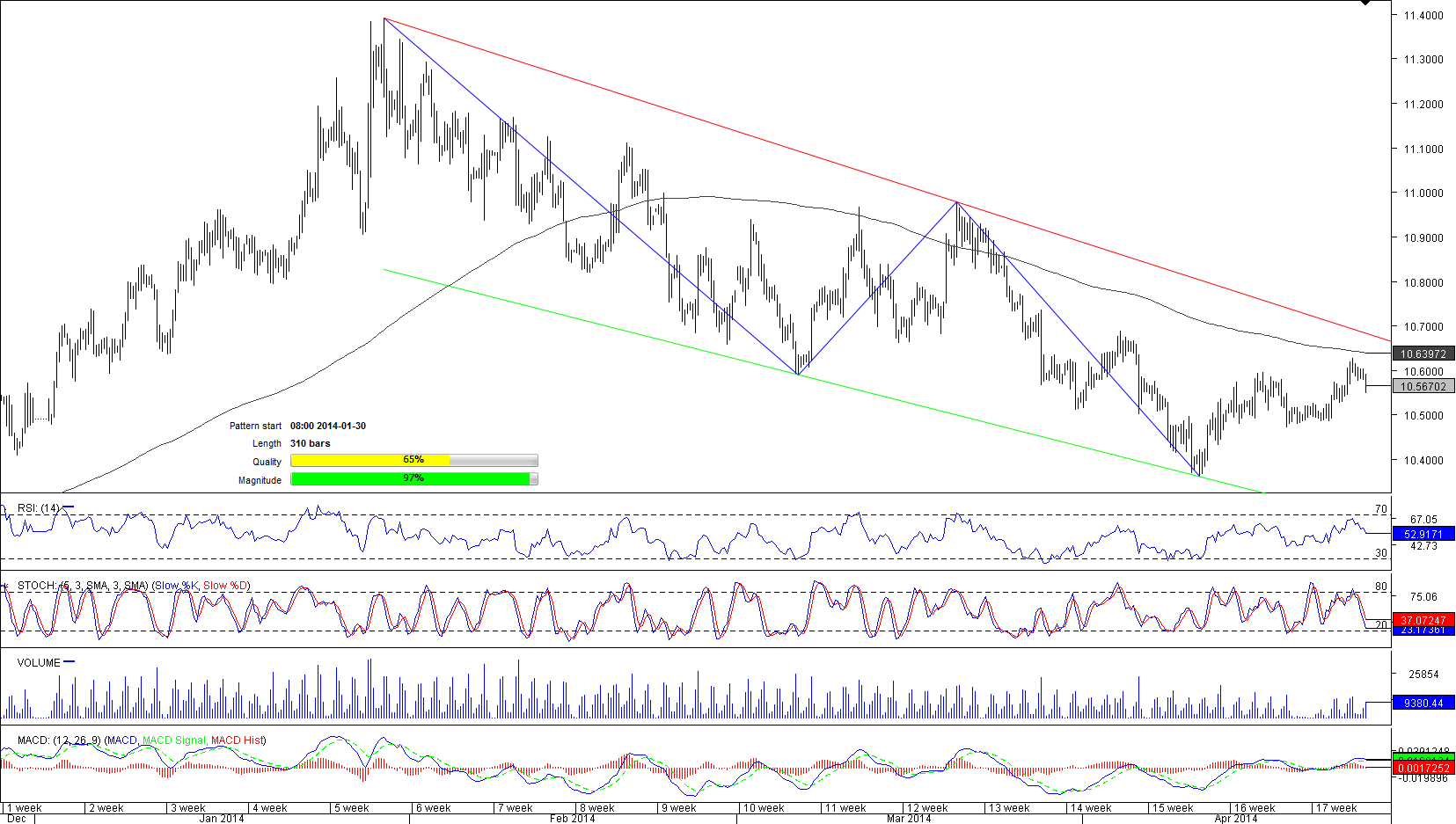 The overall trend is bullish, however, after peaking at 11.398 on January 30, the greenback start losing ground versus the South African Rand. The pair is trading perfectly in line with Fibonacci retracement, and it seems that the pair is approaching a key retracement level, while is likely to hold pair's depreciation. This level is located at 10.268, however, the pair still has a room for a manoeuvre before the level is reached. Market sentiment is not clearly marked, while technical indicators are pointing at a retest of the resistance line. It is hard to predict whether the upper trend line will be breached soon, however, the short– and long-term outlooks are bullish.