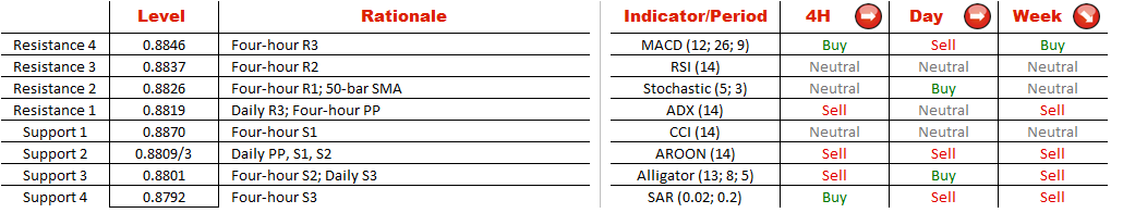 Several hours earlier, the pair broke out of the pattern and now is trading below the lower limit and the 200-bar SMA at 0.8826. A dive beneath these chief support levels has not resulted in a sharp decline yet. Notwithstanding this, USD/CHF is likely to overcome its reluctance to drop before long as over 55% of traders at the SWFX hold short positions.