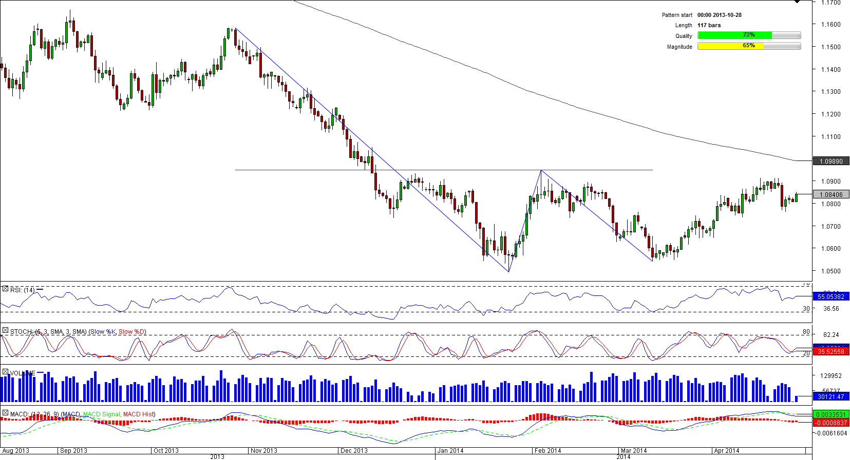 After a November-January sell-off AUD/NZD managed to stabilise near 1.0566, which has proven to be a reliable support level. As a result, there are now two prominent troughs standing next to each other, which implies a potential reversal of the bearish trend. Apparently, the SWFX market sees this scenario as very likely, being that 74% of open positions are long. Still, there is a necessary condition for the double bottom pattern to realise its full upward potential, namely a breach of the neck-line, which would pave the way to 1.1585. However, the supply area 1.1000/1.0950 is reinforced by the monthly R3 and 200-day SMA, thereby decreasing the chance of a break-out to the upside.