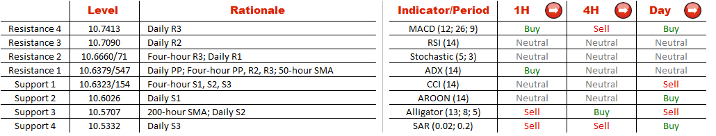 At the moment, the currency pair is vacillating below the 50-hour SMA at 10.6403, albeit slightly; however, given that more than 60% of market players at the SWFX hold short positions, we may expect the instrument to retreat further from its short-term SMA in the hours to come.