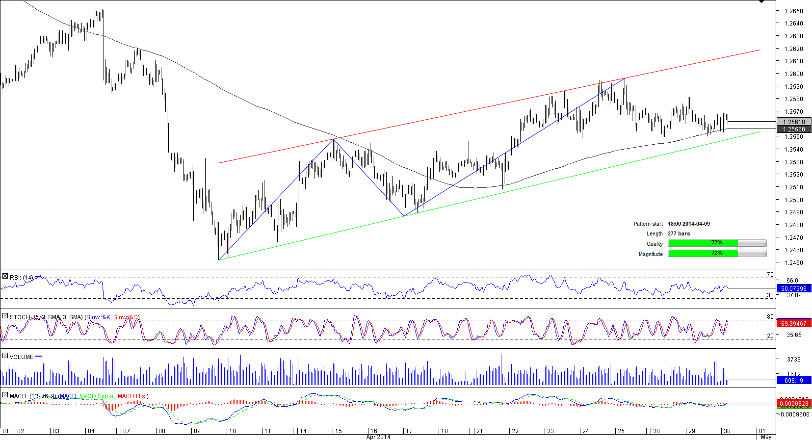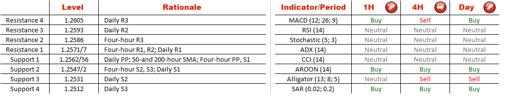 Recently, the currency couple penetrated the 50-hour SMA at 1.2562 and now the pair is sitting slightly above this line. If the instrument continues to appreciate, it is likely to near daily resistance at 1.2574 and then may even target daily R2, R3 at 1.2593/605, a jump above which may push the pattern's resistance to the fore.