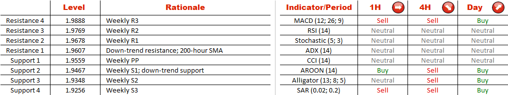 The weekly pivot points proved to be of great significance for GBP/NZD. First, the currency pair was well-supported by the weekly R1 at 1.9678. Then the price topped out at 1.9769, which is represented by the weekly R2. And at the moment the weekly PP acts as a reliable line in the sand, preventing every attempt of the Sterling to gain bearish momentum. However, right now the exchange rate is facing a tough resistance at 1.9607, which is formed by the down-trend and 200-hour SMA. Consequently, there is a high chance that 1.9559 will not be able to keep GBP/NZD buoyant any longer. If this is the case, 1.9467 is likely to be targeted next, even though 74% of open positions are long.