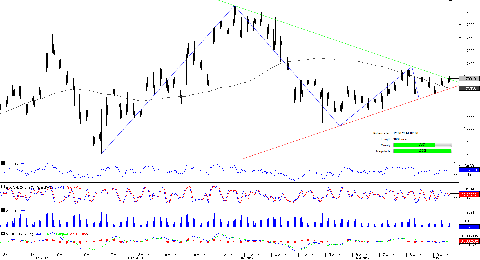 The Australian Dollar started to lose ground against the currency of neighbouring country after it approached a two-month high of 1.0915 late April. The decline was developing inside a bearish corridor, the upper trend-line of which has been recently penetrated. The breakout was a part of a sharp rise underpinned by a jump above the 200-bar SMA at 1.0786.