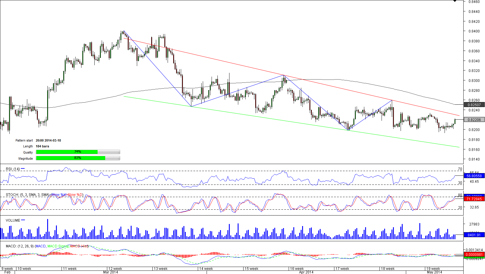 EUR/GBP is currently trading in boundaries of two trade patterns, including the falling wedge and a descending triangle, both formed on a 4H chart. Keeping in mind lower trading volumes, and the fact both trend lines will converge in a couple of days, the pair is likely to be highly volatile soon. The outlook is bearish both from the perspective of technical and fundamental analyses. Mario Draghi will talk down the Euro, while aggregate technical indicators on a 4H and daily charts are sending ‘sell' signals, meaning the pair will depreciate soon. The number of buy and sell pending orders is almost equal, hence, traders, are not confident about the long-term outlook.