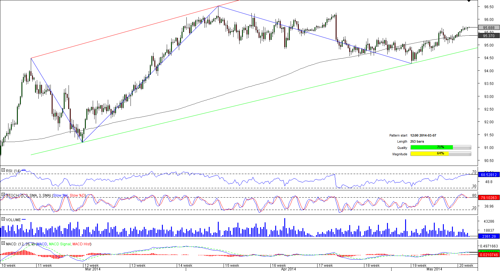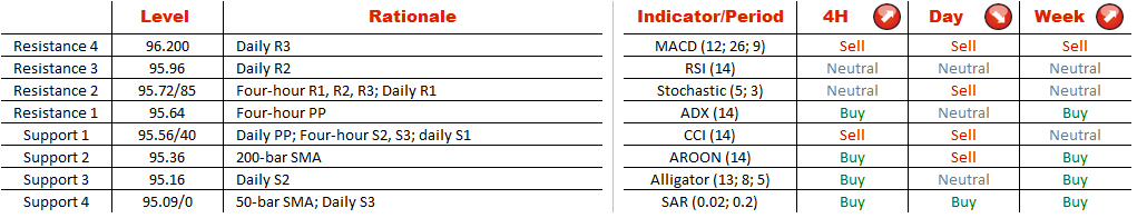 After touching a five-month low of 88.27, AUD/JPY reversed its trend and entered a bullish corridor that took it to a one-year high of 95.54 early April. At the moment, the pair is sitting slightly above the 200-bar SMA meandering at 95.37 and it is likely to prolong its winning streak in the hours to come given that almost 70% of orders are paced to buy the pair, according to the SWFX data. To make this happen, AUD/JPY has to breach a bunch of resistances at 95.64/96 that if overcome may push the currency couple to 95.80/5 (daily R1, R2; four-hour R3), above which only 96.20 (daily R3) is capable to prevent the pair from re-approaching the one-year high.