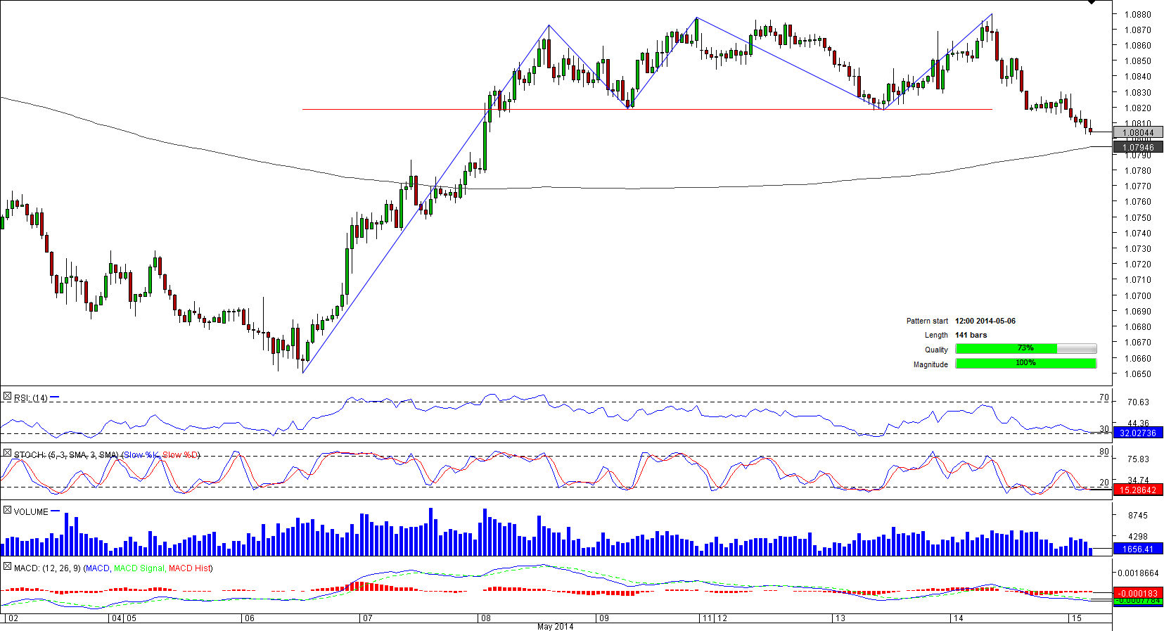 Now the pair is strongly tilted downwards as it has recently plunged below the neck-line at 1.0818. In the foreseeable future, AUD/NZD is likely to attain 1.0796/4 (daily S1; 200-hour SMA) that may help the instrument to halt its decline. However, if this support fails to mollify selling pressure that is suggested by technical numbers, the pair may witness a long-lasting depreciation.