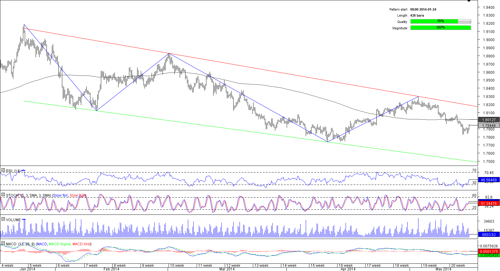After a failure at 1.9189 at the end of January GBP/AUD started to trade in a down-trend. And while at a first glance it may look like a bearish channel, the trading range has been narrowing since, from eight and a half figures to six and a half, implying that the emerging pattern is a falling wedge. Accordingly, eventually the trend is supposed to reverse, but the near-term prospects are bearish, since the currency pair has just confirmed the down-trend resistance at 1.83 and it is now moving en route to the lower edge of the pattern at 1.75. As for the present distribution between the long and short positions, it is notably skewed in favour of the former that take up 65% of the market.