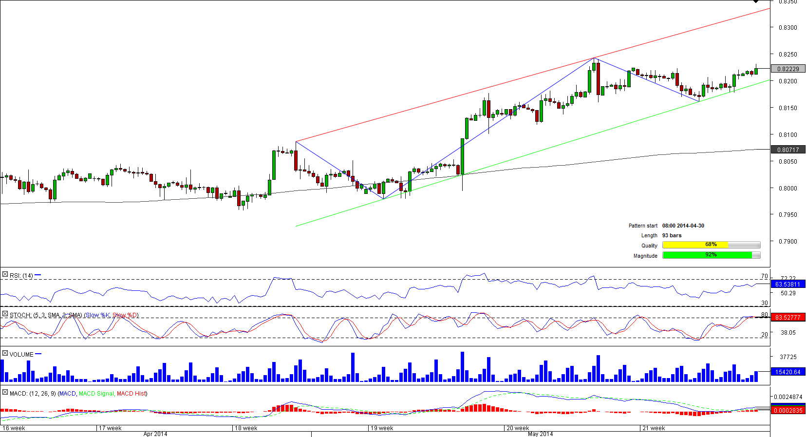 It seems that the sell-off that was initiated back in August of 2012 has finally come to an end and CAD/CHF is now ready to start erasing the losses. It was the support at 0.78 that did not let the loonie to depreciate further and turned the currency pair around, which is now forming a bullish channel. Accordingly, it is likely that the Canadian Dollar will move away from the up-trend line at 0.8190 and head towards 0.8315, where the pair will supposedly meet the upper boundary of the pattern and will become prone to a bearish correction. The near-term indicators support this idea, especially on the daily time-frame, where five out of eight studies are giving ‘buy' signals.