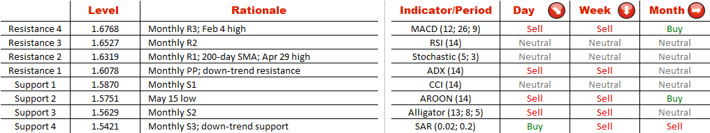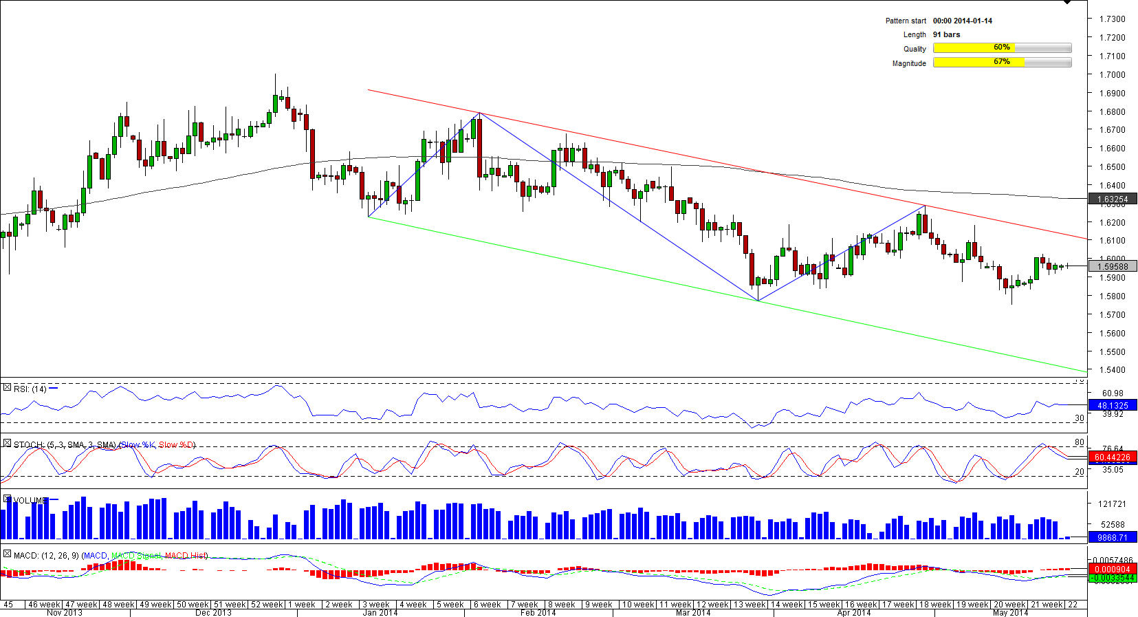 As EUR/NZD failed to rise above 1.70 last year, the next five months the market was explicitly bearish. Still, during that time the currency pair managed to form a downward channel. Accordingly, it is expected that the Euro is going to respect the resistance at 1.61 (down-trend line and monthly PP) and head south. Eventually the sell-off should extend to the lower boundary of the pattern, specifically to 1.5421, but there are strong support levels standing in its way, such as the monthly S1 at 1.5870 and May 15 low at 1.5751. But the bearish outlook on EUR/NZD is also reinforced by the daily and weekly technical indicators, which are mainly bearish.