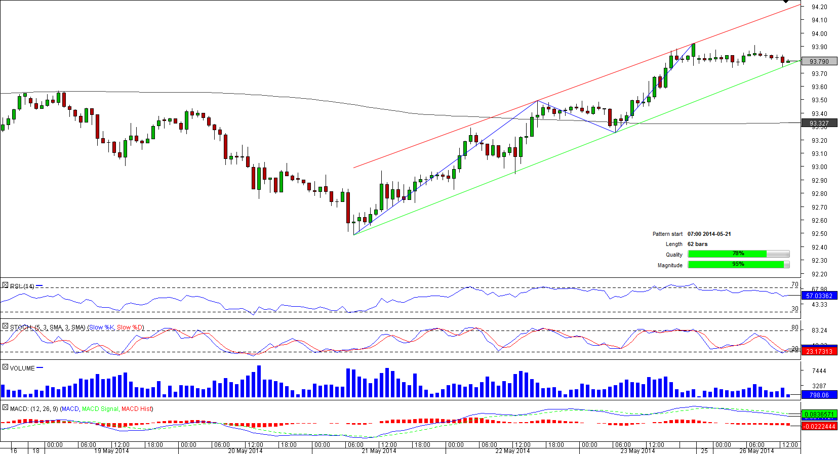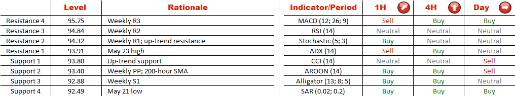 However, there are also arguments against continuation of the rally. Since the beginning of April CAD/JPY has been trapped between 92.50 and 94, and the exchange rate has already reached the upper boundary of this range. This means that the Canadian Dollar may prove to be unable to sustain the momentum, and instead of crossing 94 it will bounce towards the support at 92.50.