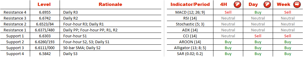To continue its bullish trend in future, the currency pair has not only to re-approach the recent high but also to surpass this mark, above which it will face a daily resistance at 6.6584. If overcome, this resistance will open the way towards the pattern's upper boundary propped up by the level of 6.6742 (daily R2), above which we may expect a bullish breakout.
