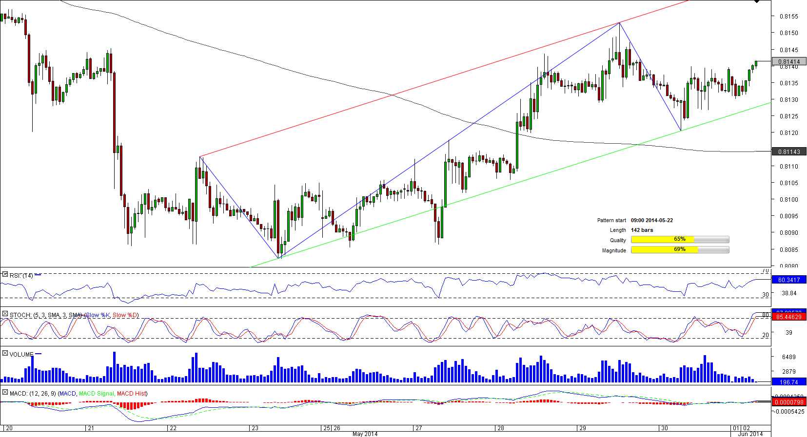 At the moment, the pair is sitting above the 50-hour SMA at 0.8135, albeit slightly. In fact, EUR/GBP had been struggling at the short-term SMA for more than a day before it eventually surpassed this level. Nevertheless, market participants do not expect the pair to settle above this mark-almost 60% of positions are short. Meanwhile, technical indicators are sending mixed signals, suggesting an advance in the short-term and a decline in the long-term.
