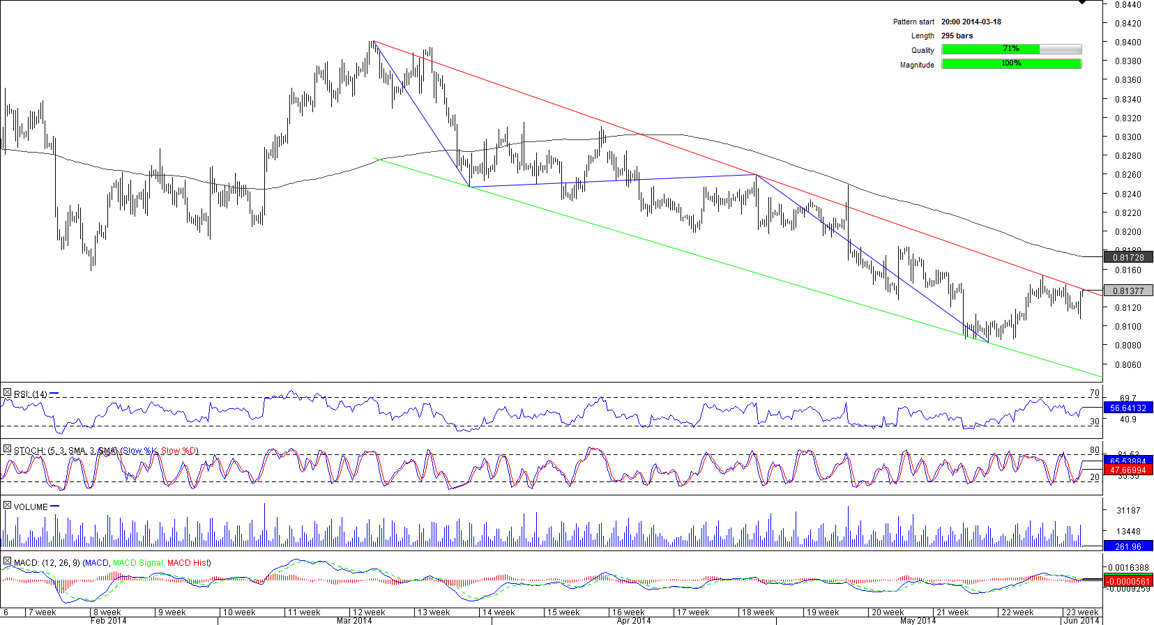 Due to a tough support level at 1.0650, which AUD/NZD encountered on May 6, the currency pair was able to commence a recovery and subsequently form a bullish channel. Accordingly, the outlook on the Aussie is positive. However, there are substantial downside risks in the near term, being that the price has just touched the upper boundary of the pattern