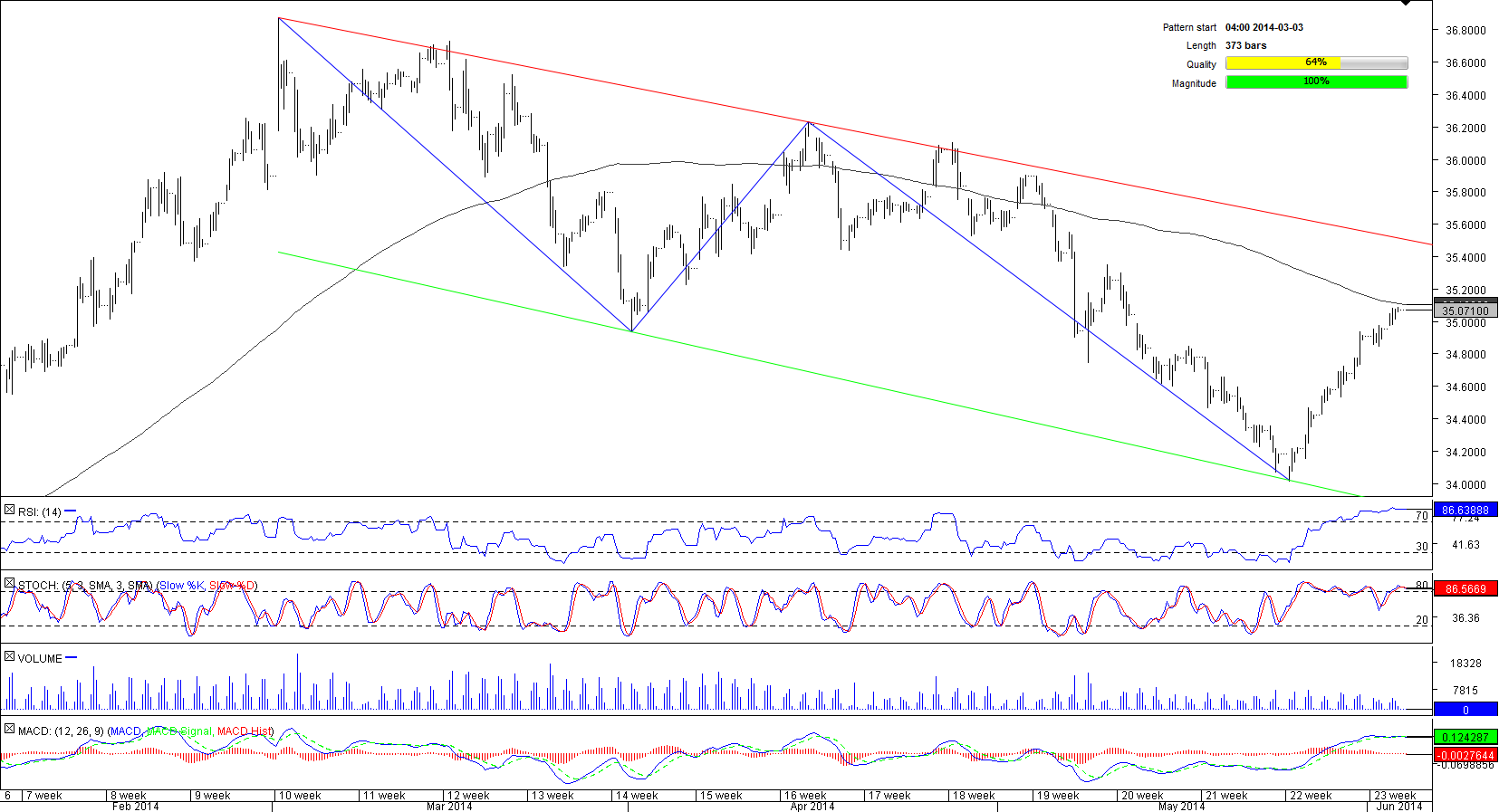 After hitting more than a five-year high of 36.8760 in the very beginning of March, the U.S. Dollar lost its spree and started to depreciate against the Russian Ruble; the decline pushed the pair into a bearish channel.