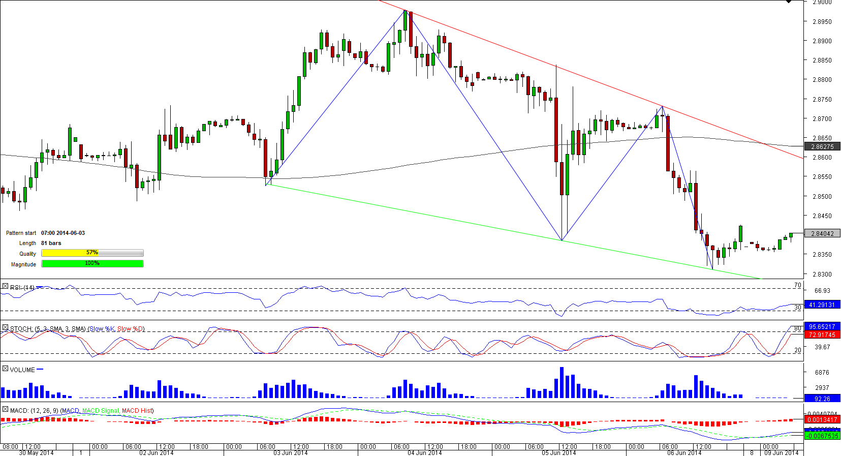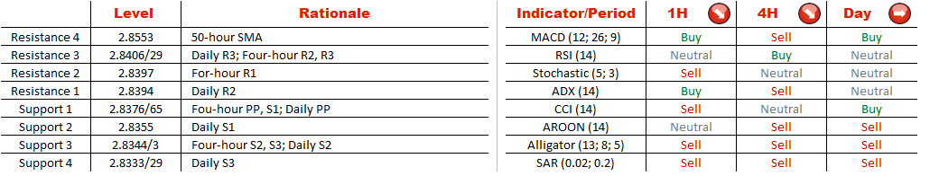 At the moment, the pair is wandering close to the recent low and is likely to re-approach this level before long given that over 80% of all orders on the SWFX are placed to sell the pair. However, the levels of 2.8376/55 (four-hour PP, S1; daily PP, S1) and 2.8344/29 (daily S2, S3; four-hour S2, S3) may prevent the pair from re-approaching the recent low.