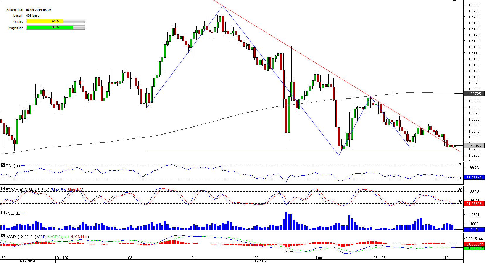 EUR/NZD is nearing the apex of the 101-bar long descending triangle pattern started early June. In fact, the pair has already surpassed the upper limit of the formation but the breakout has not been followed by any notable changes in the pair's trend yet. Interestingly, market players do not believe that consolidation above the upper boundary will result in a rally, in contrast more than 70% of them hold short positions in the pair. This doubts the pair's ability to rise in the nearest future and warns that EUR/NZD may even see a bearish exit in the hours to come.