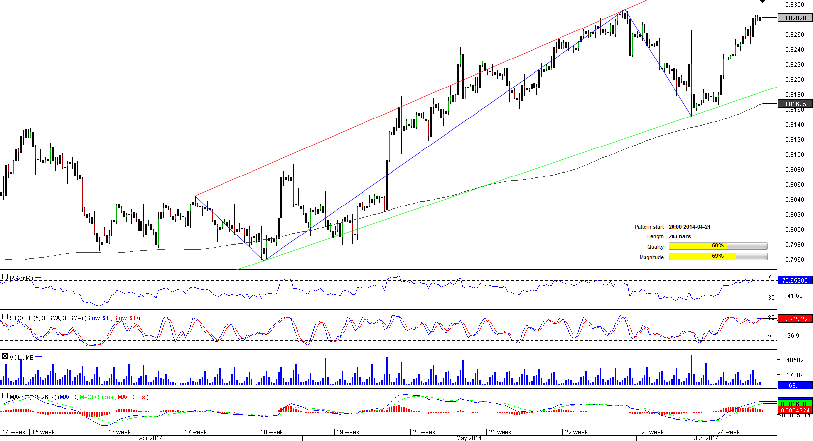 Having touched a three-year low of 0.7804 in mid-March, CAD/CHF started to recover losses and a month later the pair entered a bullish channel.