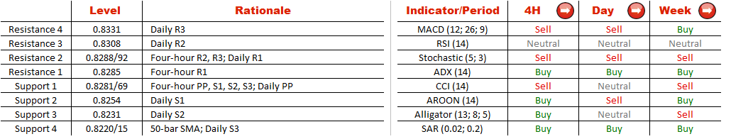 Now the currency couple is headed upwards; however, SWFX players do not expect the trend to persist in the nearest future – almost two-thirds of them hold short positions. If this comes true, the pair is likely to widen its distance from a five-month high of 0.8295 and may slump below 0.8277/69 (four-hour PP, S1, S2, S3; daily PP) and 0.8254 (daily S2), a dive under which will open the way towards 0.8221/15 (50-bar SMA; daily S3) - the last defense before the pattern's lower boundary.