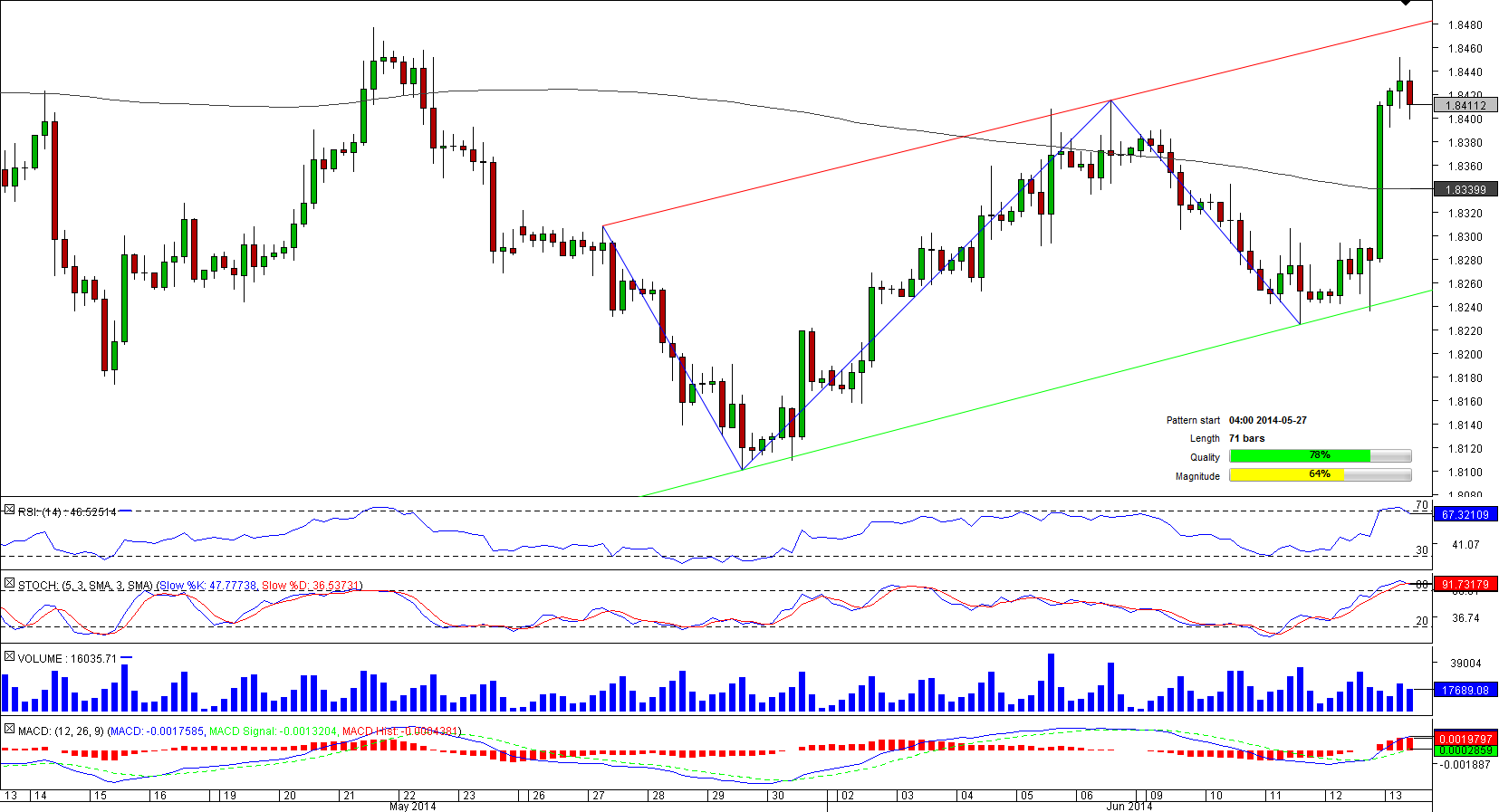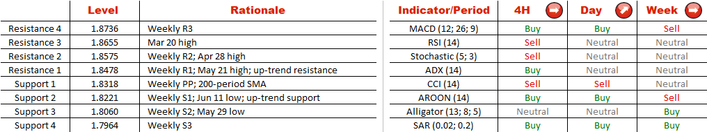 As GBP/NZD has bottomed out near 1.81 at the end of May, the currency pair was able to commence a recovery, which later on developed into a bullish channel. However, right now the rate is facing the resistance represented by the upper trend-line of the pattern, weekly R1 and May 21 high, meaning in the nearest future the Sterling is likely to weaken relative to the Canadian Dollar. At the same time, the rising trend-line at 1.8221, which is currently reinforced by the weekly S1 and Jun 11 low, will be expected to stop this sell-off and initiate yet another bullish wave. Meanwhile, the SWFX market is bearish towards GBP/NZD—62% of open positions are short.