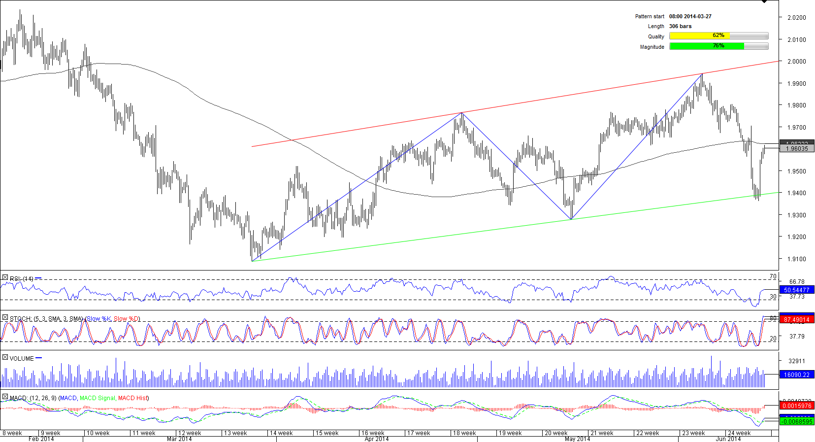 Presently, currency pair is facing the resistance at 1.9648, created by the weekly S1 and 200-period SMA. And while this level is fairly significant, the rally is expected to extend beyond this point, potentially up to 2.00, where it is going to meet the upper boundary of the pattern.