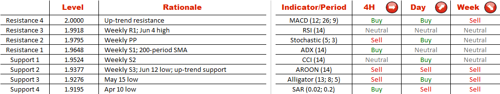 Since the beginning of April the Great British Pound has been outperforming its New Zealand counterpart, which led to formation of the upward-sloping channel. Accordingly, the long-term outlook is positive. So is the short run, considering that GBP/NZD has just bounced off the lower trend-line at 1.9377, where we also have the weekly S3 and Jun 12 low.