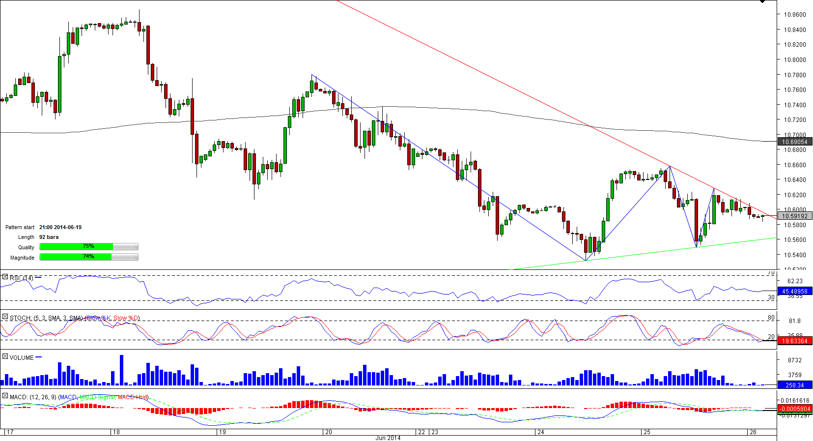 The U.S. Dollar has been losing ground against its South African peer since mid-June when it attained a three-month high of 10.8674. While retreating, USD/ZAR shaped a 92-bar long triangle pattern, the apex of which will be reached later in the day, meaning that the breakout is looming. Meanwhile, traders on the SWFX fail to express a clear opinion about the direction of the exit – the proportion of long positions only slightly outweighs the proportion of the short ones – 56% of orders are long and 44% are short. Technical indicators also send mostly neutral signals.