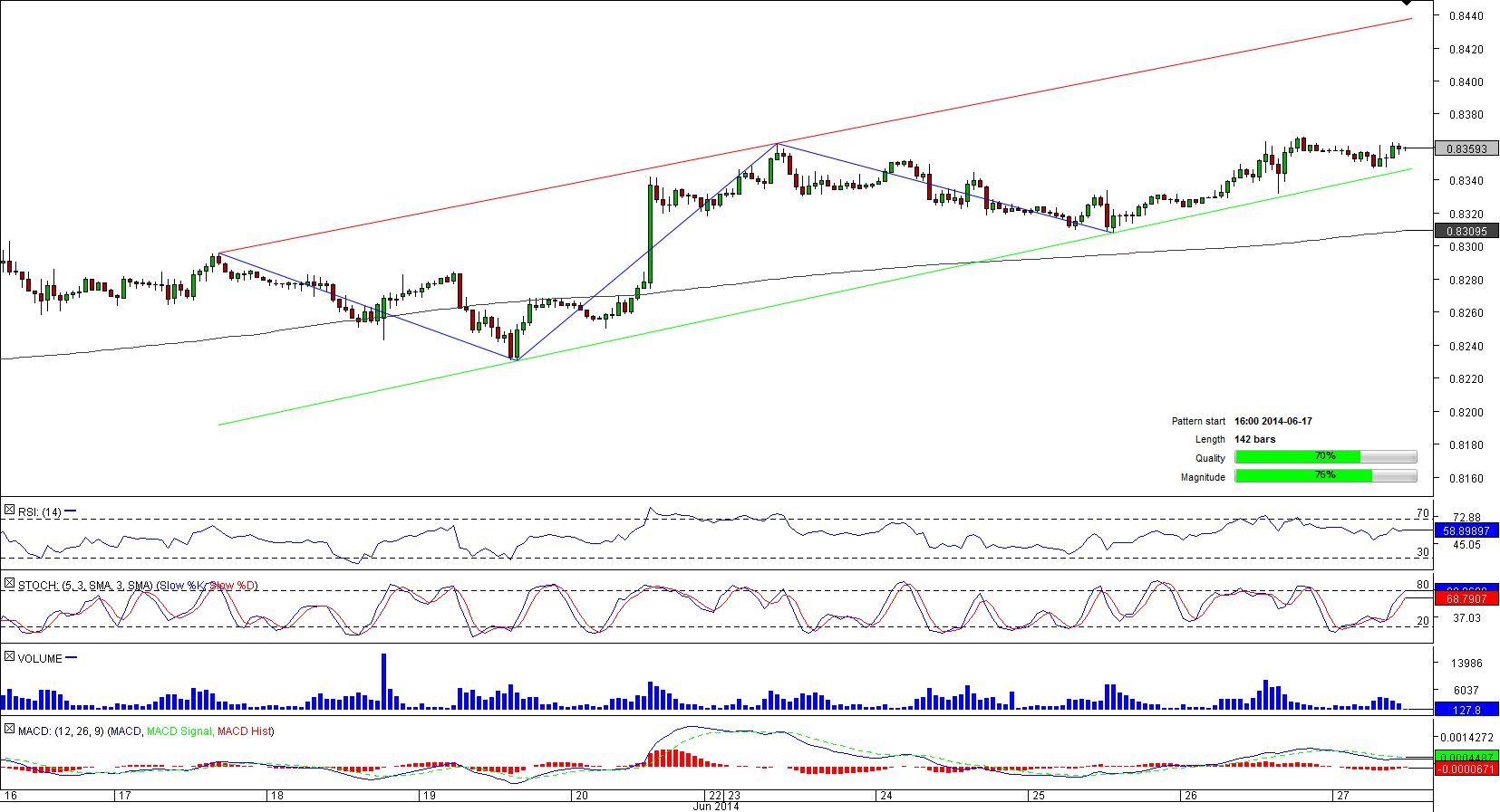 As CAD/CHF gained a solid foothold above 0.8230, it was able to advance further north and form a bullish channel. Accordingly, the currency pair should soon decouple from the lower trend-line of the pattern and head towards the corridor's upper edge at 0.8440. This idea is also strengthened by the near-term technical indicators.