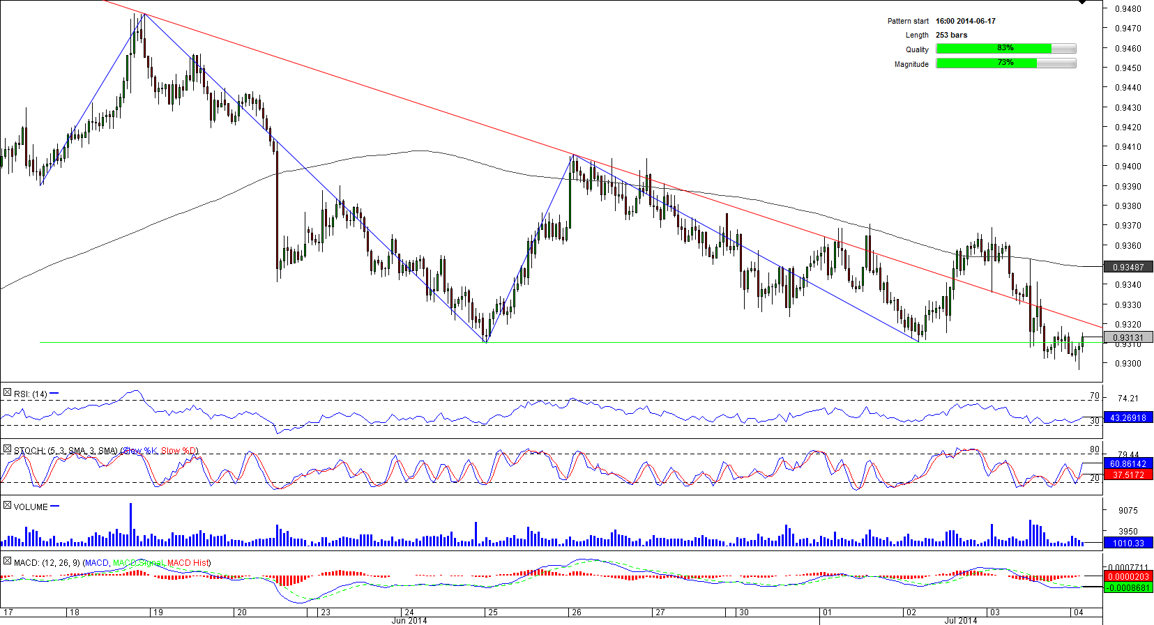 NZD/CAD has been constantly attempting to exit a 253-bar long descending triangle pattern that has been blocking the pair's moves since mid-June. Up to now, the currency pair has unsuccessfully tried to breach the pattern's boundaries for four times but given that the apex will be reached in a several hours, we may expect NZD/CAD to exit the formation in earnest before long. However, the direction of the looming breakout seems unclear, with the SWFX data showing the proportions of long and short positions to the total numbers of orders are almost equal. Technical indicators shed some light, sending ‘sell' signals for short and medium terms.