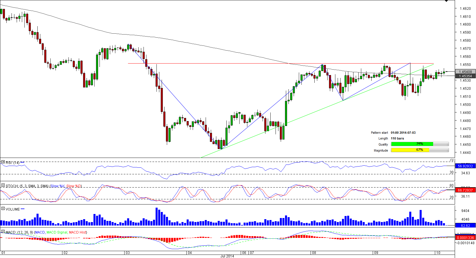 Meanwhile, the pair's volatility has been gradually decreasing since the beginning of July as EUR/CAD managed to enter an ascending triangle pattern. However, more notable fluctuations may come back to the picture since EUR/CAD exited the formation several hours earlier and now is sitting below the lower trend-line but slightly above the 200-hour SMA at 1.4540. Technical indicators suggest the pair is capable of a climb before long but may change its trend in a longer perspective.