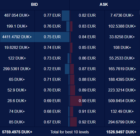 Meanwhile, the online chart has been updated with the resistance and support levels that are observed by looking at the bid and ask order statistics at dukascoin.com.