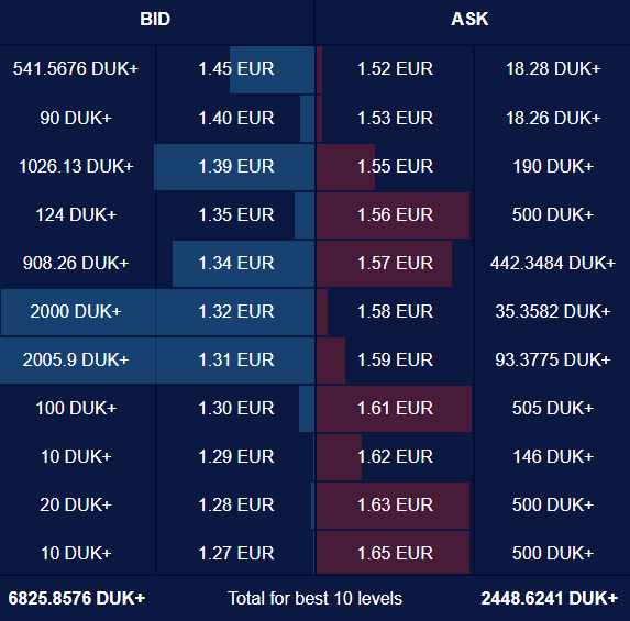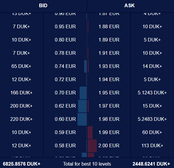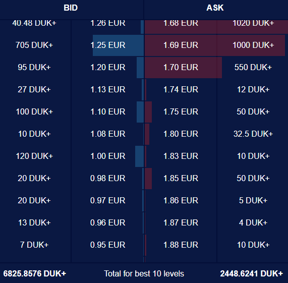Around the 1.5600 level there are orders for more than a thousand coins to be sold. Afterwards, starting from the 1.6100 level there is a major concentration of sell orders, as at almost each level up to the 1.7000 mark there are orders to sell at least 500 coins.