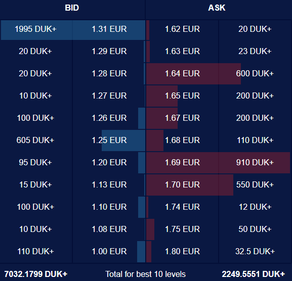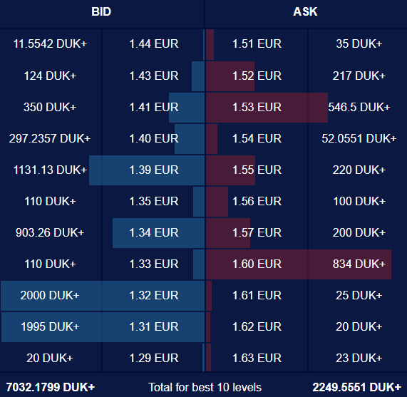 Notable sell orders are located at 1.5300, 1.6000 and 1.6400 levels, where more than 500 coins could be sold. In the meantime, the 1.6900 level has orders for more than thousand coins to be sold.