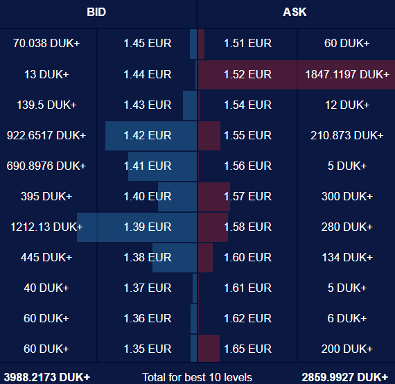 Nearly 2000 coins could be sold at 1.5200. In the meantime, there are notable sell orders at 1.6000. Up to that level, a couple minor sell order cluster are spread out.
