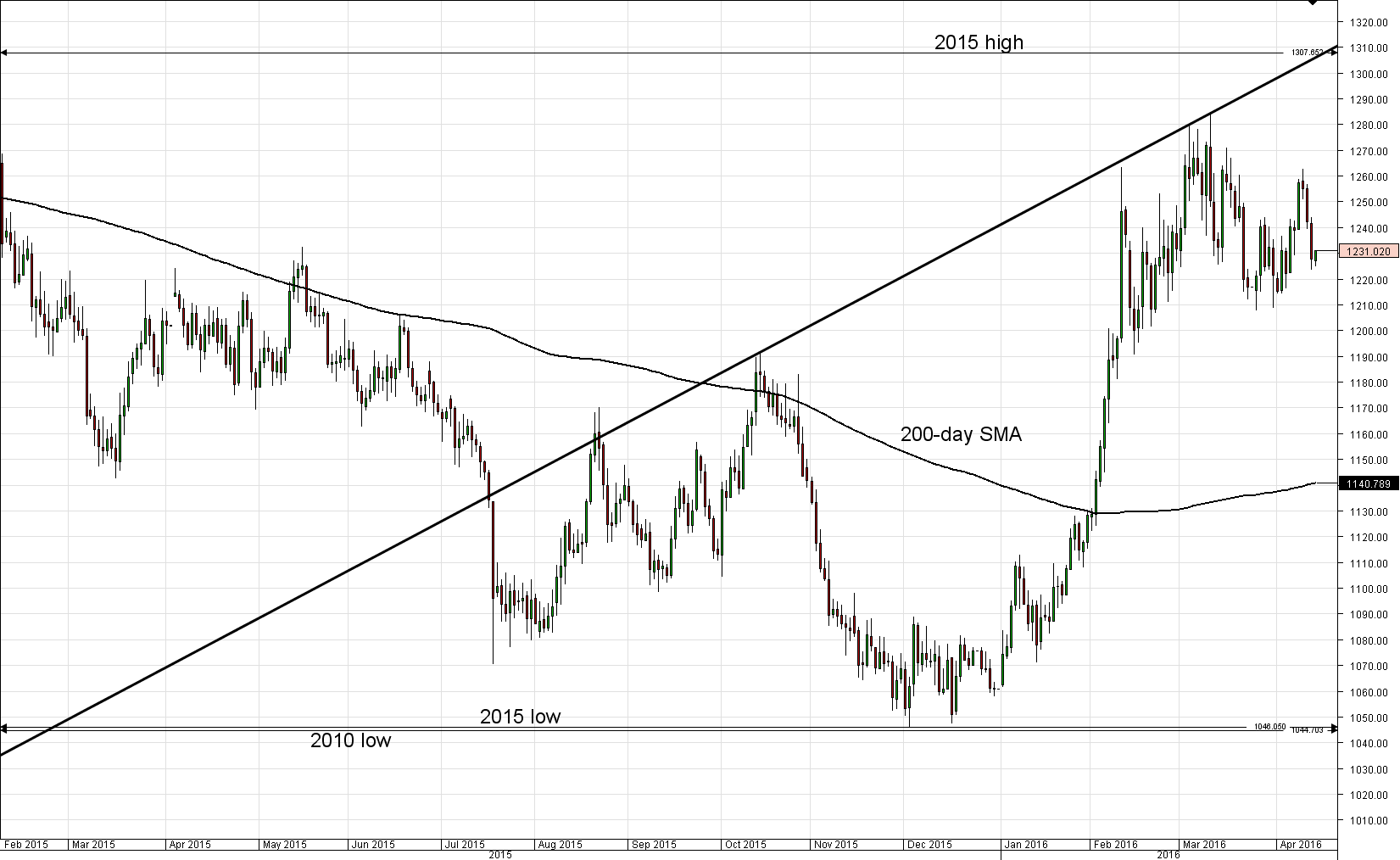 Traders who were asked regarding their longer-term views on gold between March 15 and April 15 expect, on average, to see the metal around 1,275 by the end of July. Generally, 63% (+4%) of participants believe the price will be above 1,250 in ninety days. Alongside, 21% (-2%) of those surveyed reckon the price will trade in the range between 1,100 and 1,250 over the next three months.
